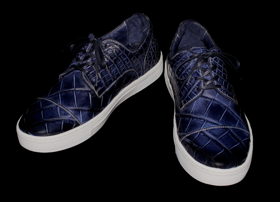 一見履き古した様なヴィンテージ仕上げを施した総ワニ革のスニーカーです。